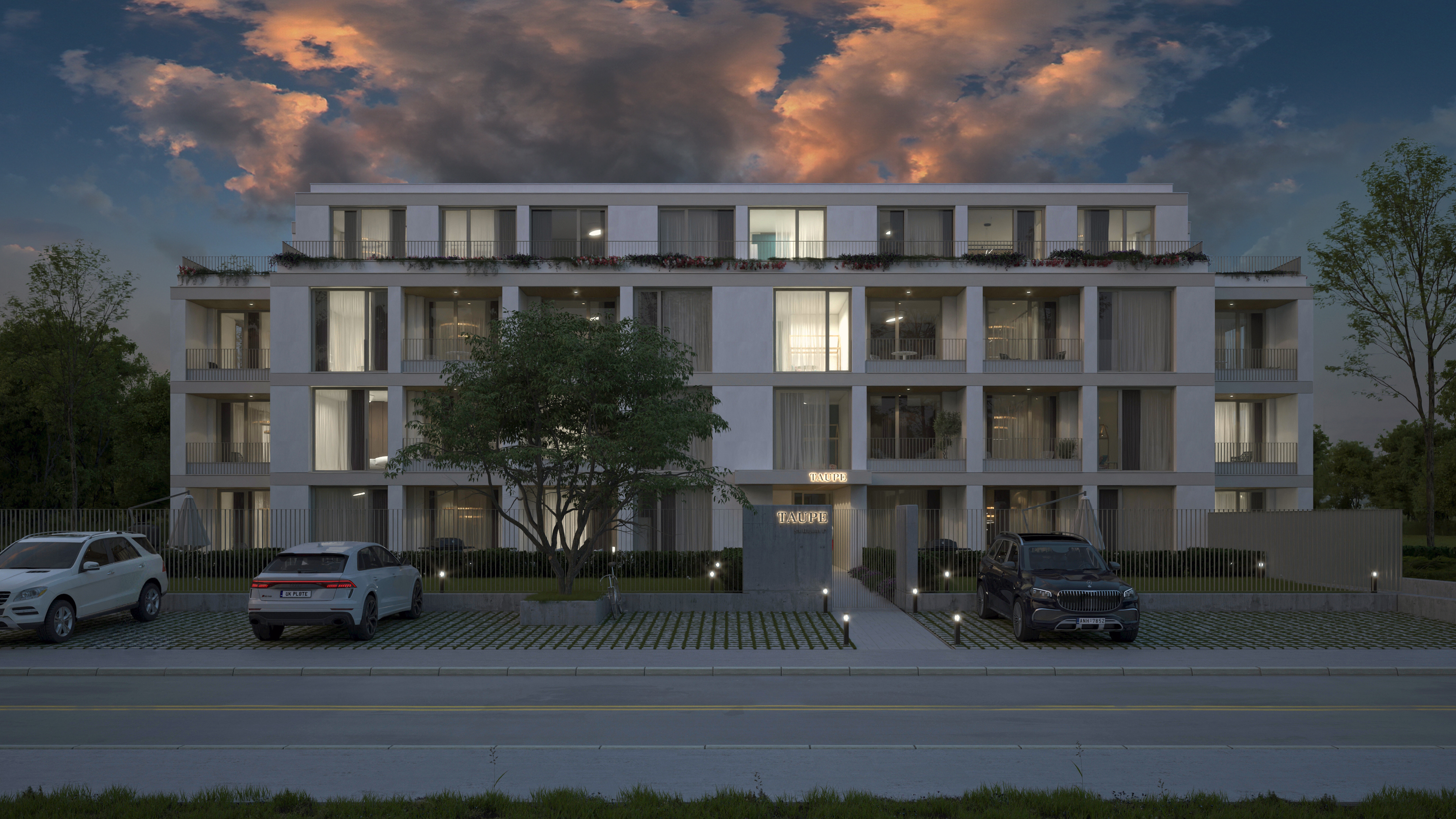 ТAUPE впечатлява с елегантна съвременна архитектура, подчертана от изчистени линии, балансирани обеми и ненатрапчива модернистична естетика. Четириетажната сграда съчетава усещане за мащаб и интимност. Концепцията ѝ е изградена около три основни принципа – светлина, въздух и свобода на движение. Панорамните прозорци, високите тавани и внимателно подбраните ориентации на апартаментите създават усещане за отвореност и лекота, като въвеждат природата директно в жилището.